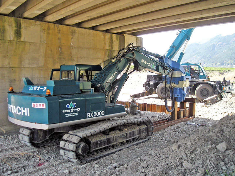 センターホール型バイブロで、桁下・高架下での施工が可能です。