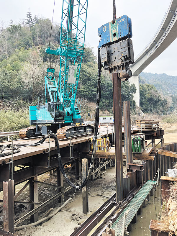 - 硬岩Ⅰ相当の岩盤に対して鋼矢板の打設が可能です。