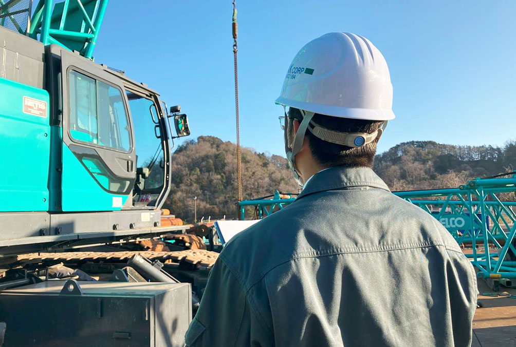 建物や土木構造物の基礎工事を行っています。オペレーターとして実際に重機を操作し、硬い岩盤を掘ったり、鋼管やH形鋼などを杭として地中に打ち込む仕事を行っています。