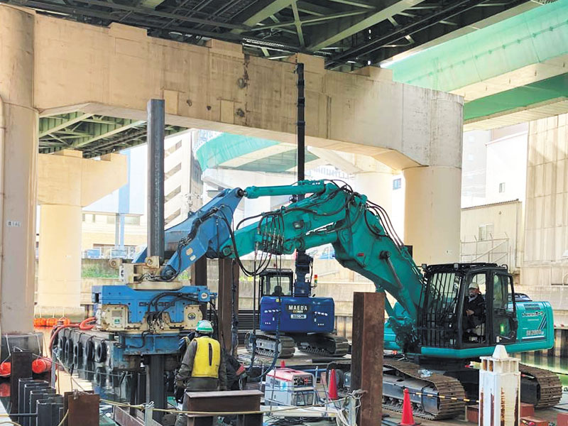 センターホール型バイブロで、桁下・高架下での施工が可能です。