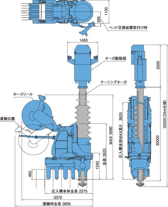 圧入機本体 | 硬質地盤圧入仕様 | 単独圧入仕様 | |