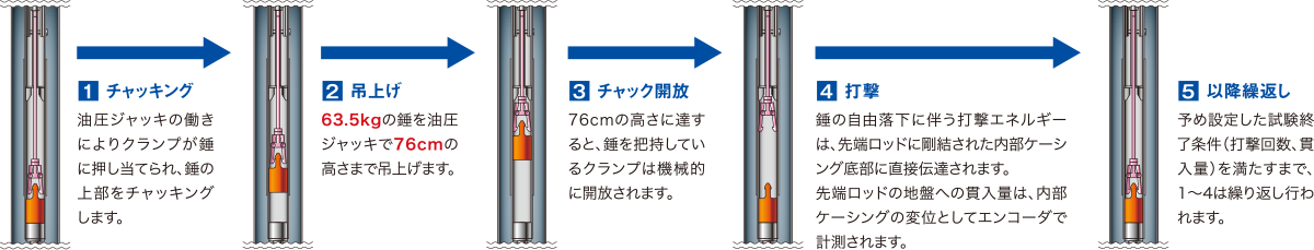 - 測定時間は10~15分と短時間で、杭全数の支持力測定が可能です。