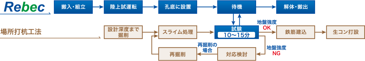 場所打ち杭の先端地盤の支持力を定量的に測定します