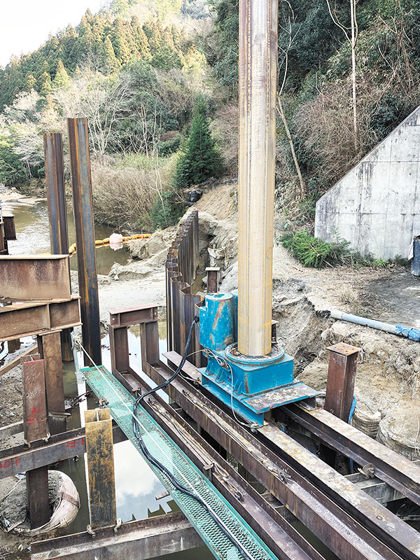 - 硬岩Ⅰ相当の岩盤に対して鋼矢板の打設が可能です。