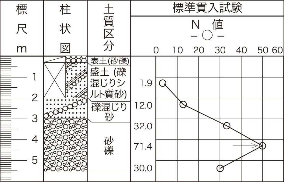 振動測定結果を図に示します。スクラップタイヤ防振壁を施工した地盤では未施工地盤と比較して5~15dBの振動低減効果を示しました。また、振動源から約30m離れた地点でも優れた防振効果を示すことも確認されました。