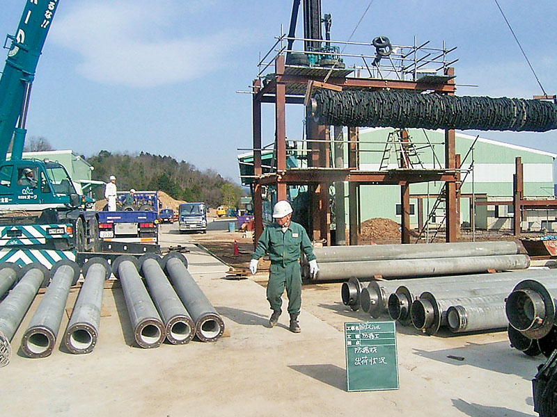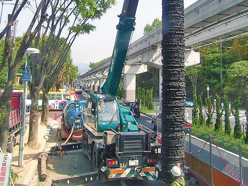 近年では、表層軟弱地盤の振動増幅現象や入力振動との共振現象などにより、小さな振動でも苦情へと発展する事例も増え、従来の防振壁よりも効果的な振動対策工法が求められていました。そんな中、当社が立命館大学との共同研究により開発したのが、スクラップタイヤを利用した振動伝播阻止法「Ti-TAN工法」です。
